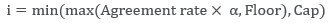 i = fee to be applied to the volume and term of the agreement, rounded off to the eighth decimal place, in decimal form