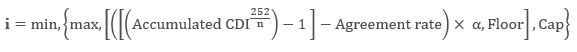n = number of business days in the period between the contracting date (excluding) and the multilateral net settlement date (including). In the case of renewal, the period considered is that between the contracting date (excluding) and the renewal date (including). The portion (n/252) is truncated in eight decimal places.